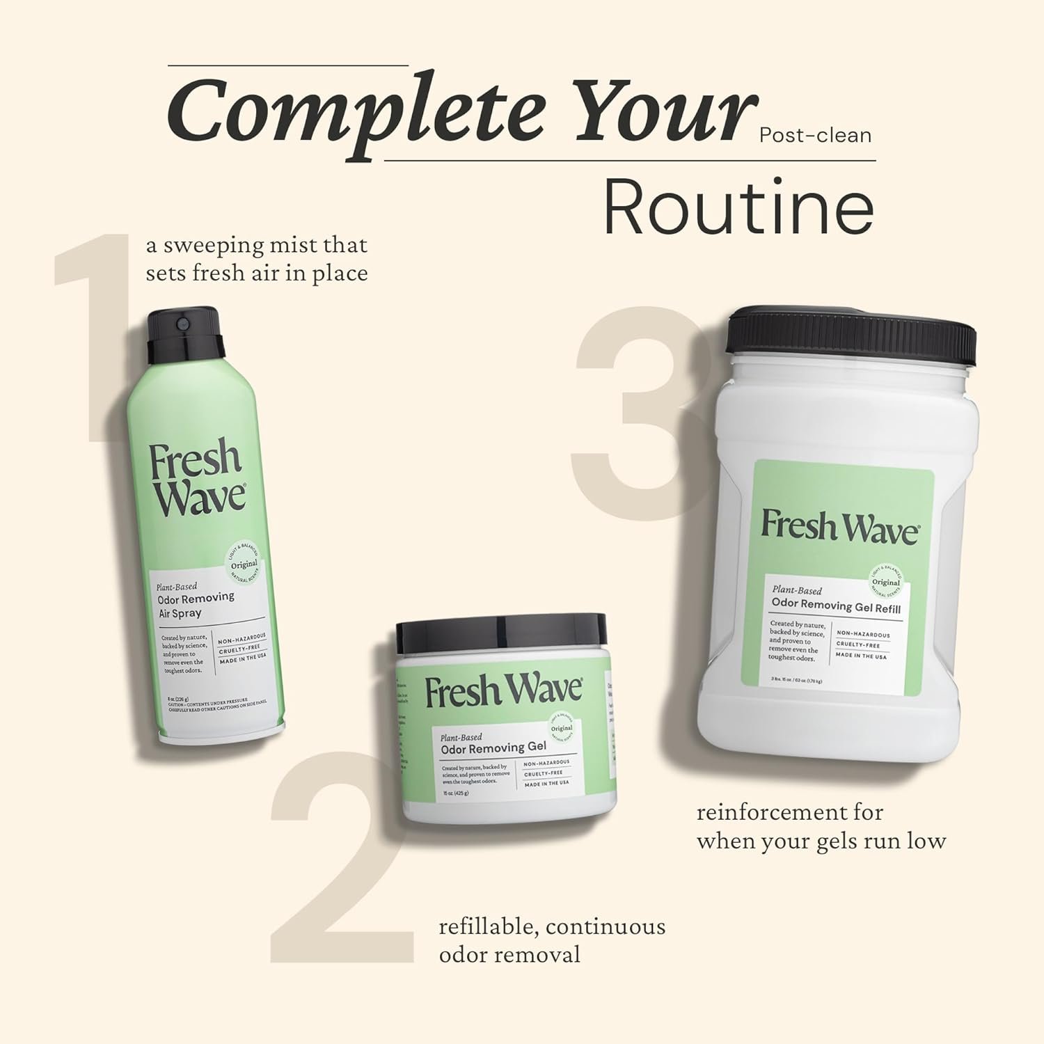 - Fresh Wave Gels get rid of everyday odors and replace them with clean, fresh air. Refills make it easy to refresh whenever you need it.