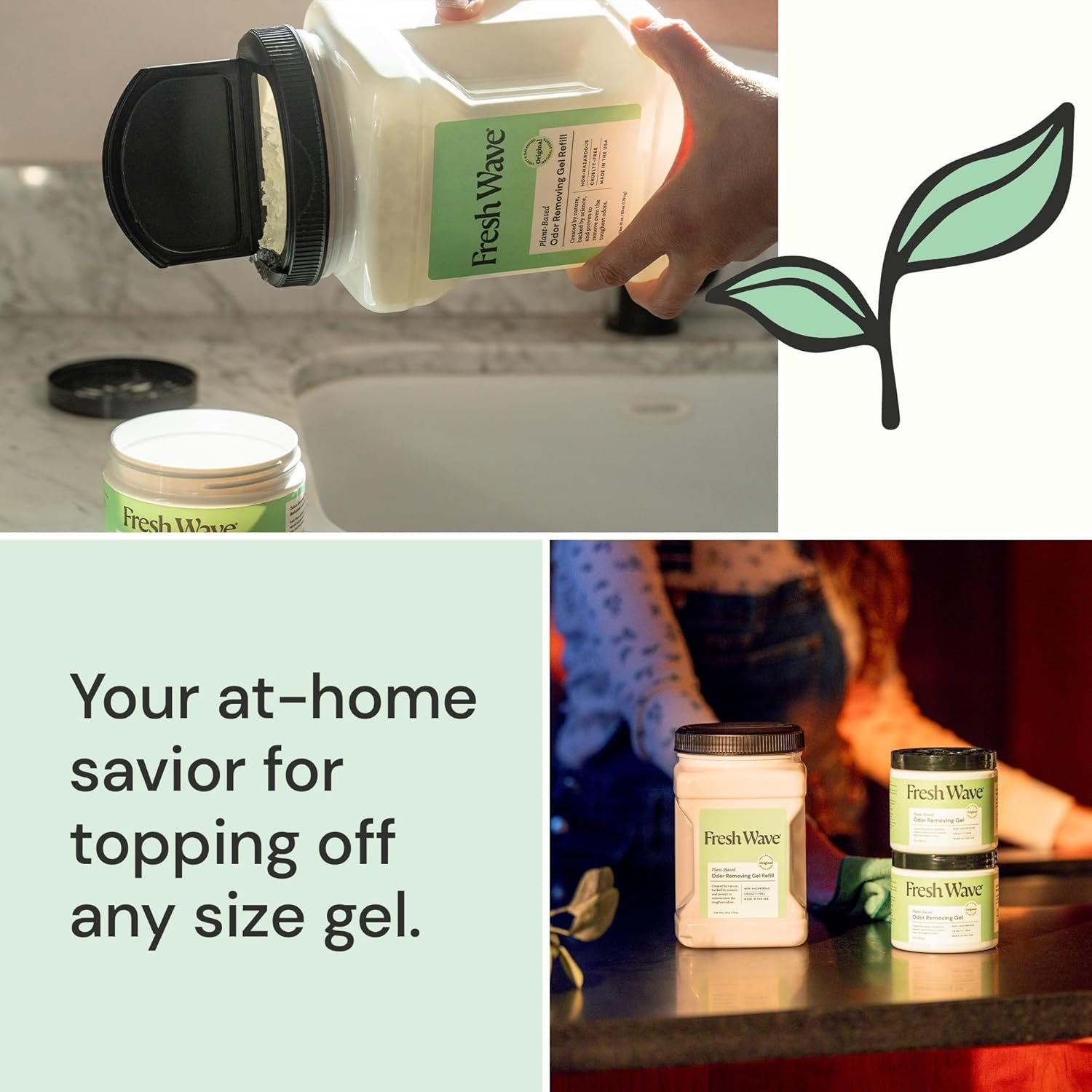 - Refill your Gel Jars and place wherever odors are strongest, like basements, bathrooms, garages, and more.
